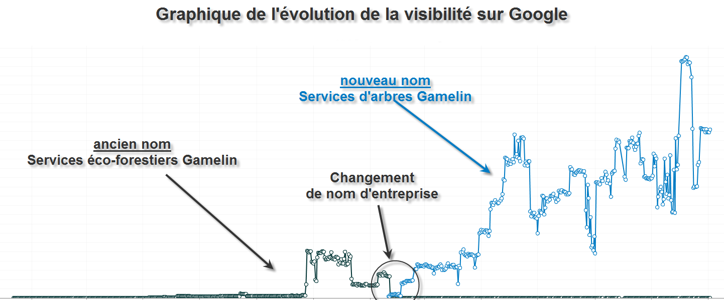 Voici une étude de cas portant sur une entreprise de services d’arbres qui a mandaté Diffusio pour lui apporter une visibilité sur Google. Dans son cas, le changement du nom de l’entreprise lui a permis d’obtenir une meilleure visibilité.